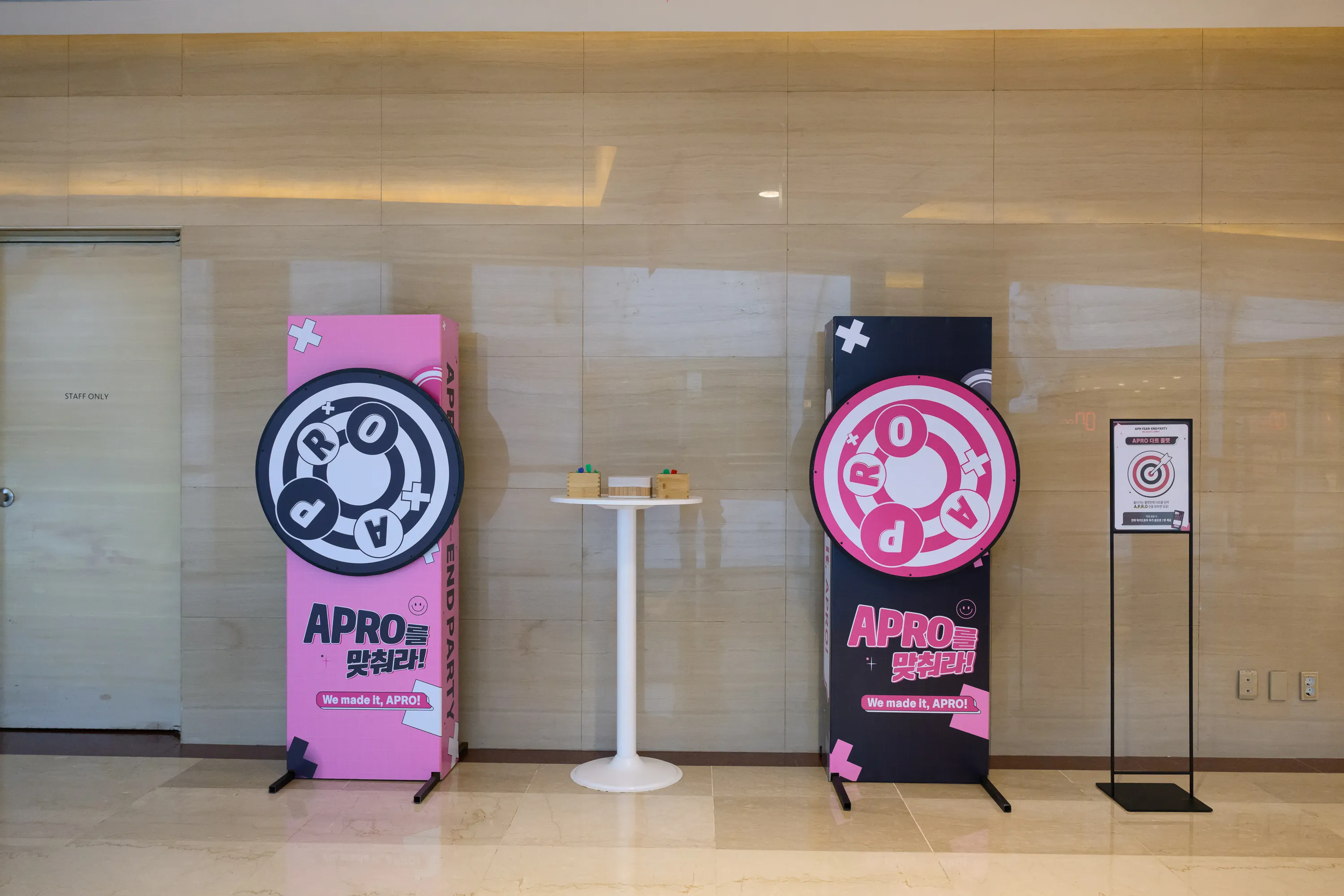 다트를 던져 A·P·R·O 글자를 모두 맞추면 성공!